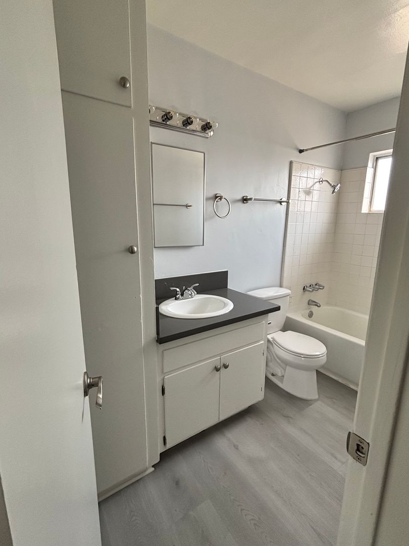 Cozy Nice One Bedroom Unit in El Monte going for $1,595 + deposit of $1,595. New paint. New flooring. New kitchen counter top and sink and faucet. New tub. New bath counter top and faucet. Walk into a spacious living room with beautiful plank flooring, as you continue walking past the living room you come across the well functional kitchen with room to place a table. Along the hallway you will see a good size bedroom and a full bath. Unit is on the top floor, owner allows a small pet of 15lbs or less.