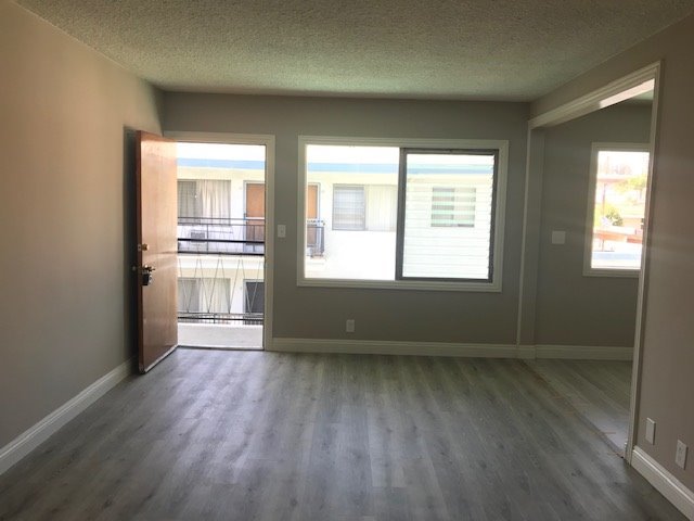 Remodeled 1 bedroom / 1 bath in the City of Montebello. At approximately 600 sq.ft. this remodeled upper level unit offers a perfect view of the courtyard. This unit has been completely remodeled with magnificent new two tone paint, new cabinets in kitchen and bath, newer stainless steel stove, newer hardwood plank floors and baseboards, newer quartz counters in kitchen and bath, newer stainless steel sink and faucet, newer tub and tub walls, newer toilet, newer range hood, newer ceiling fan, newer mirrored closet doors and newer window coverings. Spacious living room great for entertaining, and the bedroom is large and has plenty of storage. This 1 bedroom unit is centrally located in a beautiful apartment complex with great amenities such as a laundry room and 1 parking space. Walking distance to restaurants and bus lines, this unit makes a great home. Apply Now!